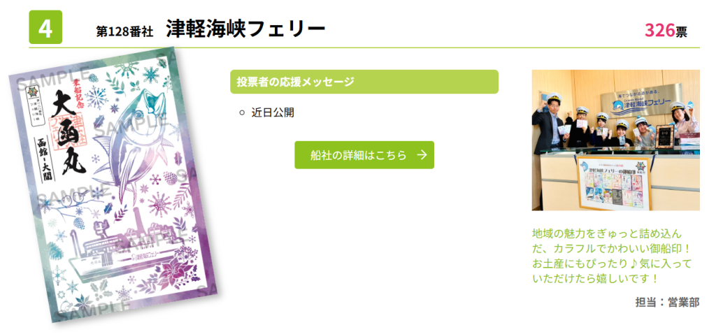 津軽海峡フェリーは「第4位」で予選を通過し、決勝に進むことができました!みなさまのあたたかい応援ありがとうございます!